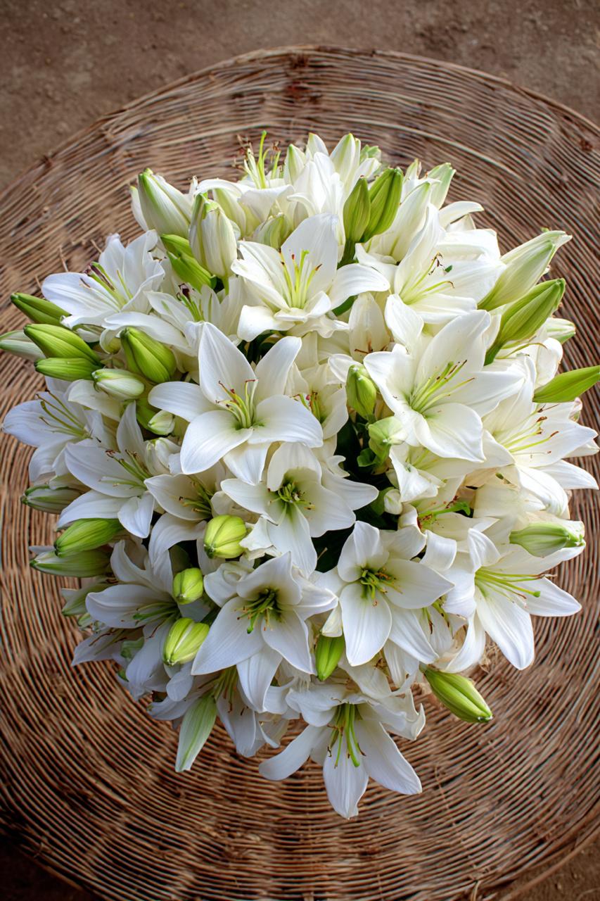 השושנים הצחורים מגיעים סגורות מפאת טריותם, ונפתחות במים לאחר מספר מים. לכן : רק לאחר מספר ימים יראה כמו בתמונה הראשונה. | התמונה להמחשה בלבד